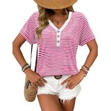 Features: Summer striped t shirts for women, button front, color block henley v neck, dolman short sleeve, cute design tee shirts for women, trendy tops for women, create a stylish and elegant look