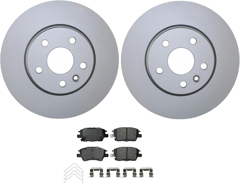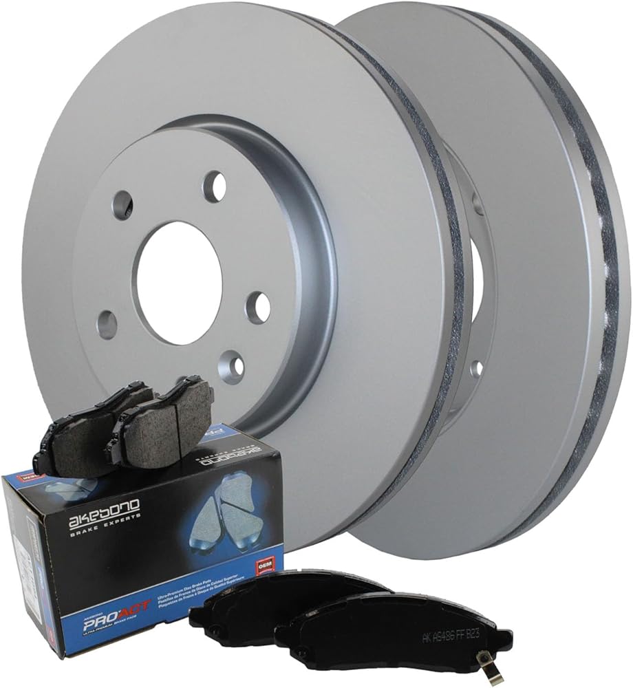 Coated Vented 276mm Disc Rotors and Akebono ProACT Ceramic Pad Set with Hardware and Acoustic Sensors Front Brake Kit For Chevrolet Bolt EUV Bolt EV Cruze Volt L LS LT Premier Diesel
