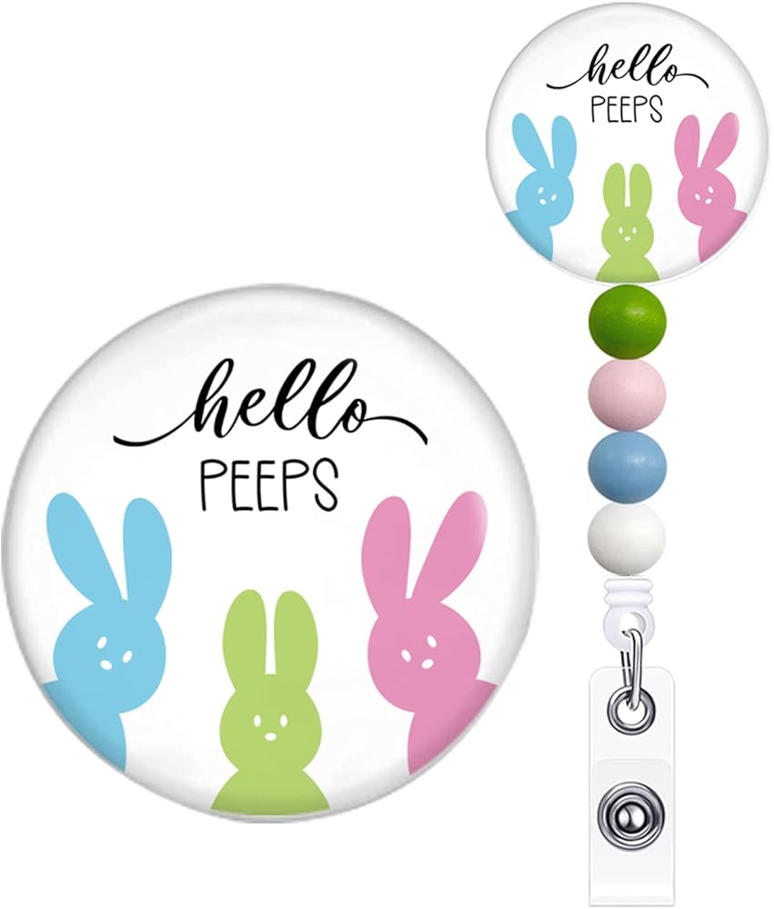 Easter Badge Reel 3 Rabbit with Bead Retractable Alligator Clip Badge Scroll, Student Office Worker Holiday ID Decoration Medical Nurse Name Decor