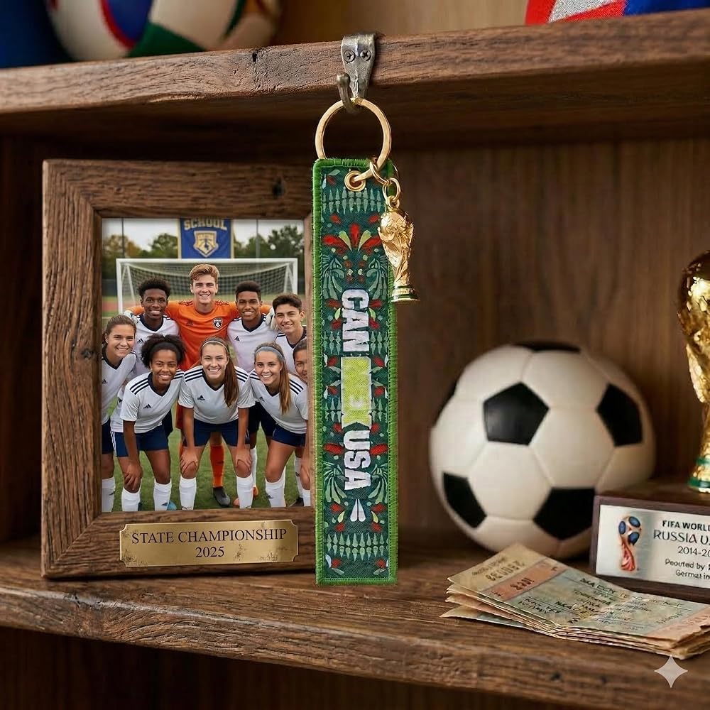 HONORING THE FIRST THREE-NATION HOSTED CUP IN FOOTBALL HISTORY – Celebrate an era-defining World Cup as Mexico, the USA, and Canada unite to host the 2026 FIFA World Cup. Featuring bold CAN·MEX·USA lettering and festive tri-nation design details, this 6.2-inch embroidered keychain and mini trophy symbolize continental pride, cultural unity, and global football history.
