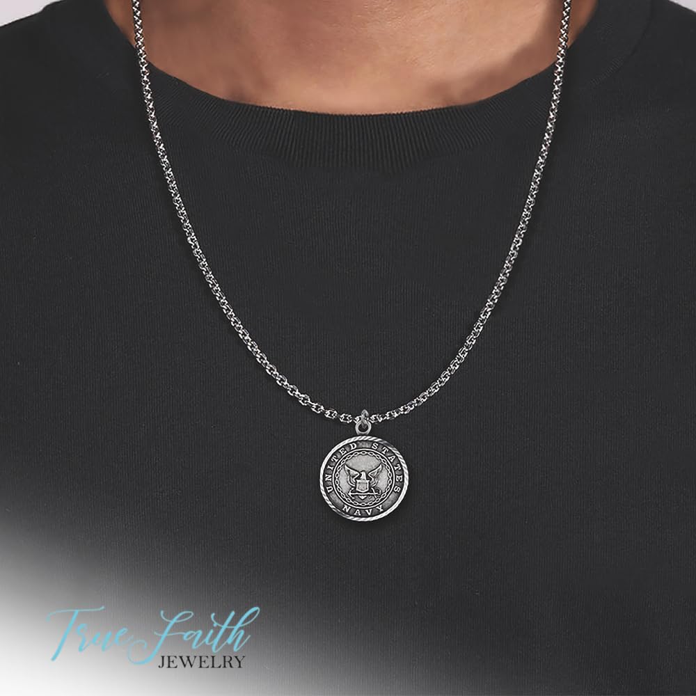 UNITED STATES SERVICE MEDAL – United States Service Pendant with Saint Michael necklace. The Patron of the military. A symbol of the battle of good against evil.