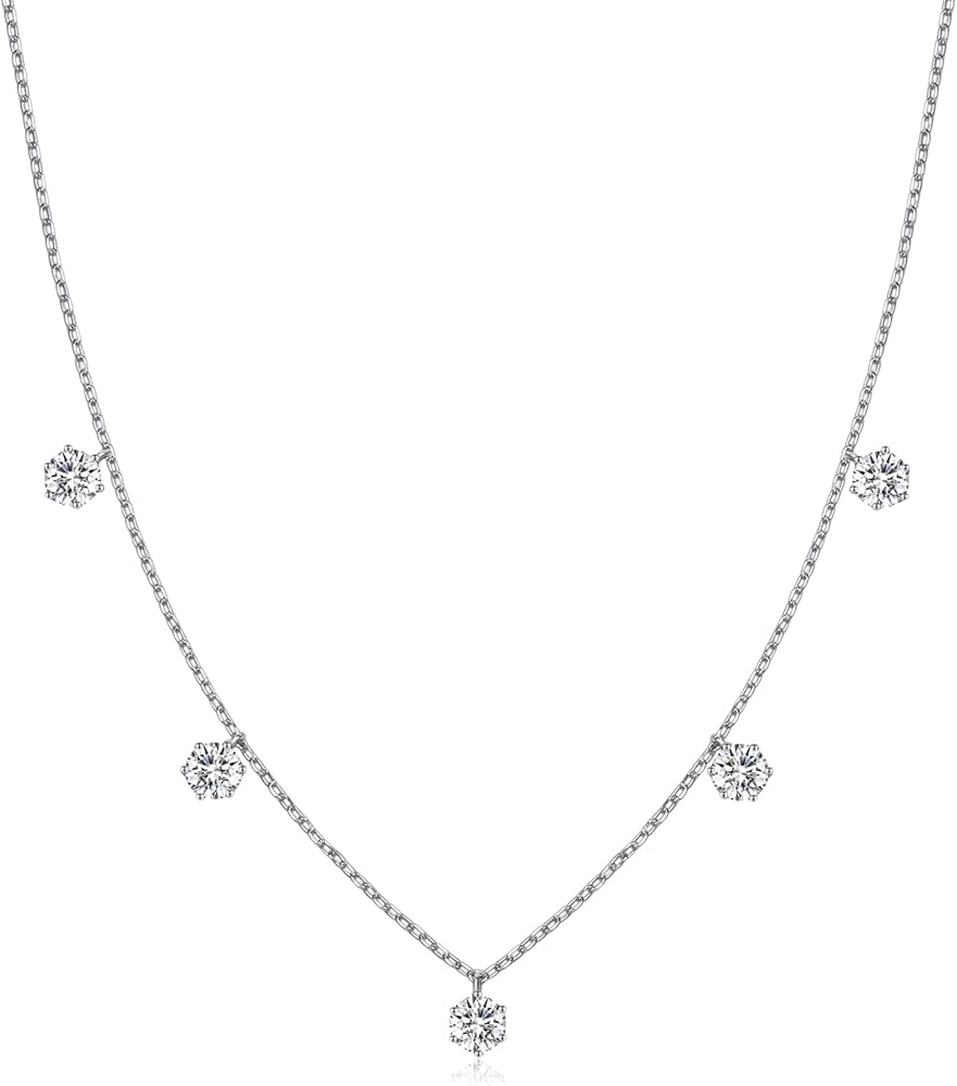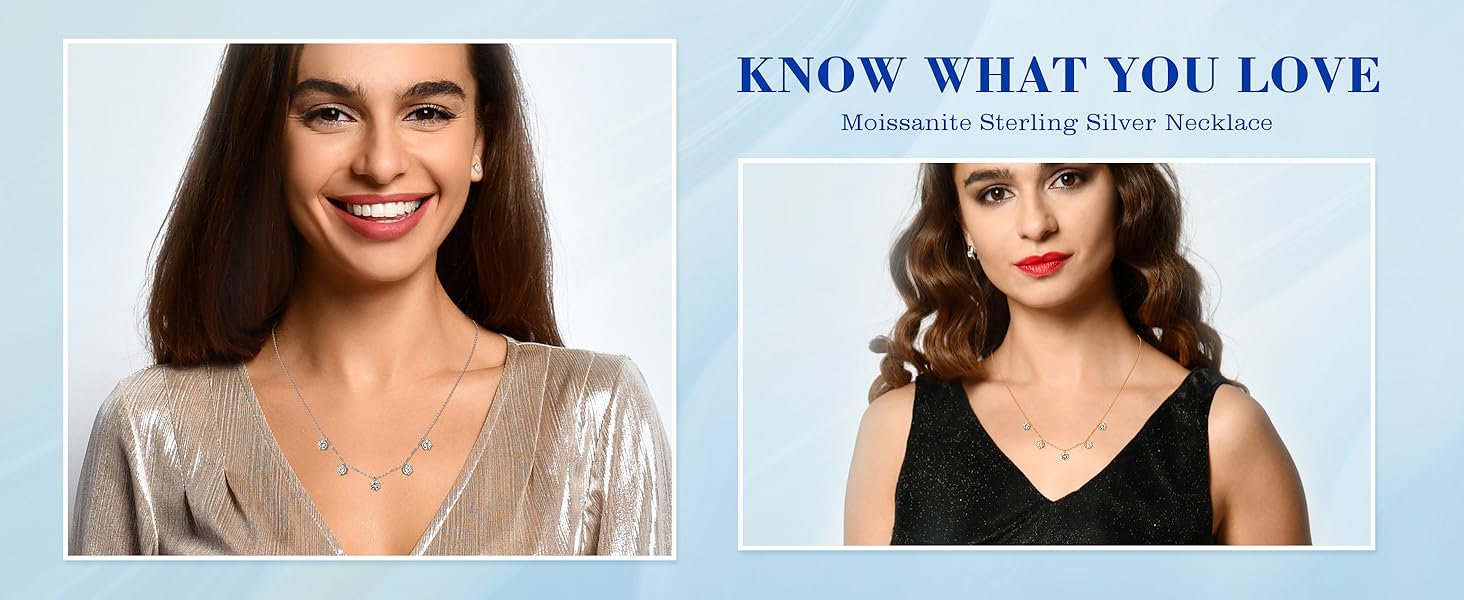【TOP GRADE MOISSANITE】: This moissanite necklace for women set with 5 moissanite stones, each stone is 1ct, total 5cttw. D color grade make it looks clear, pendant setting metal is 925 Sterling Silver. The stones feature hand made setting instead of wax setting, to ensure our stones are stronger and safer on the setting; On the other hand, the hand made setting will make the stones look more neat and will not uneven, to ensure a high-end outlook.