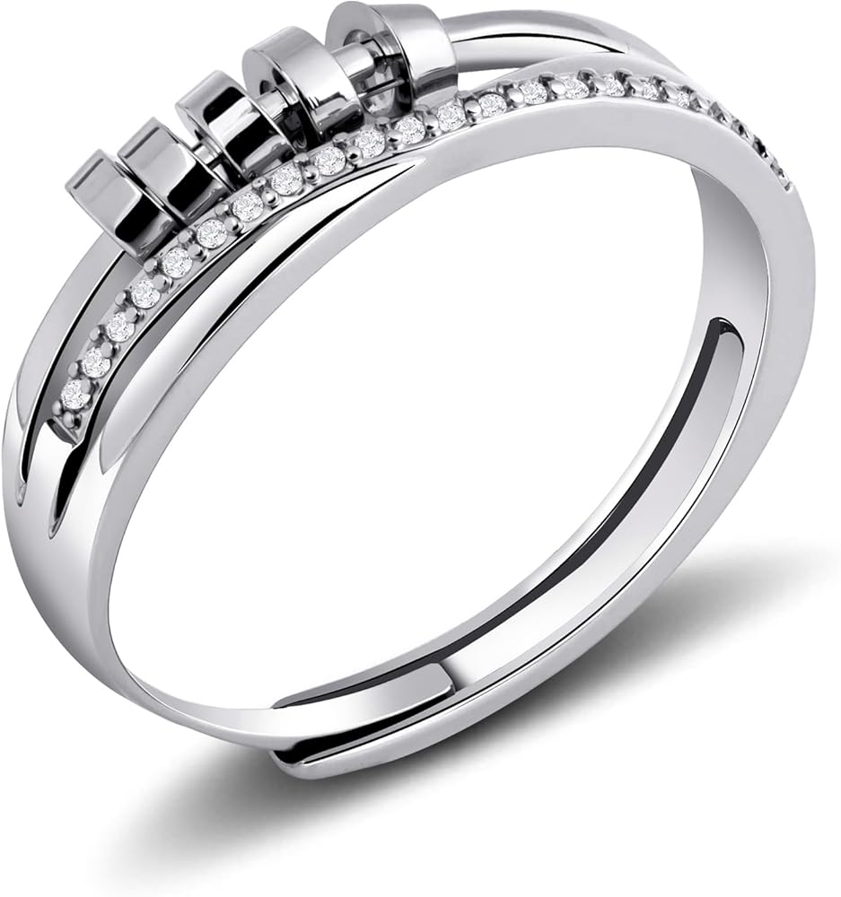 Premium Sterling Silver Zircon Ring for Women - Crafted from high-quality sterling silver, this ring features sparkling zircon stones and a unique rotating cylinder design It stands out as a distinctive option among silver rings for women and zircon rings