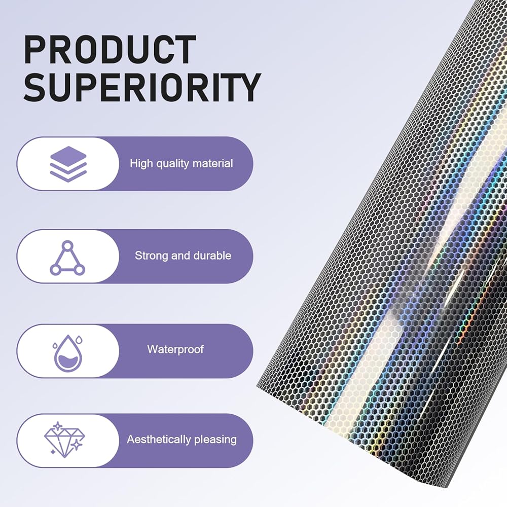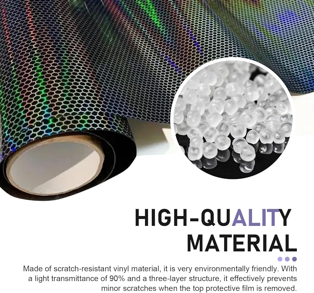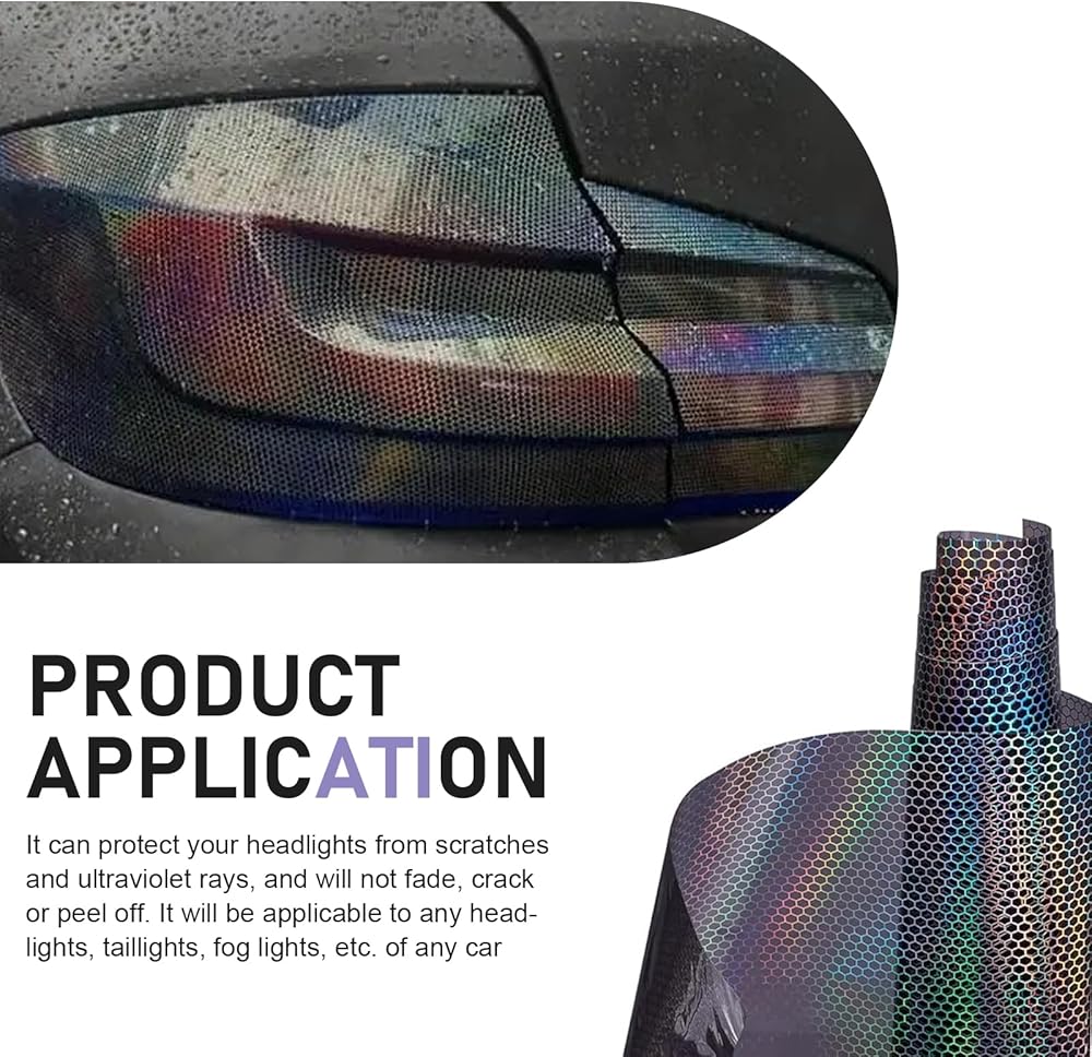 Enhanced Nighttime Safety: The honeycomb pattern enhances reflective visibility. When light shines directly on it, the headlight film emits a rainbow of colors without affecting the normal use of the headlights. This design improves the visibility of the vehicle to other road users at night, reducing the risk of collisions.