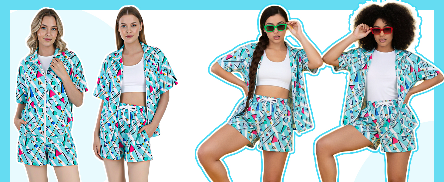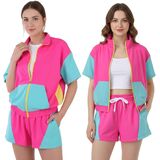 Retro Color Block Design: Featuring vibrant color blocking and prints, this matching two-piece set brings a fun 80s and 90s vibe. It's a stylish choice for themed parties, dance events, or adding a retro touch to your casual wardrobe