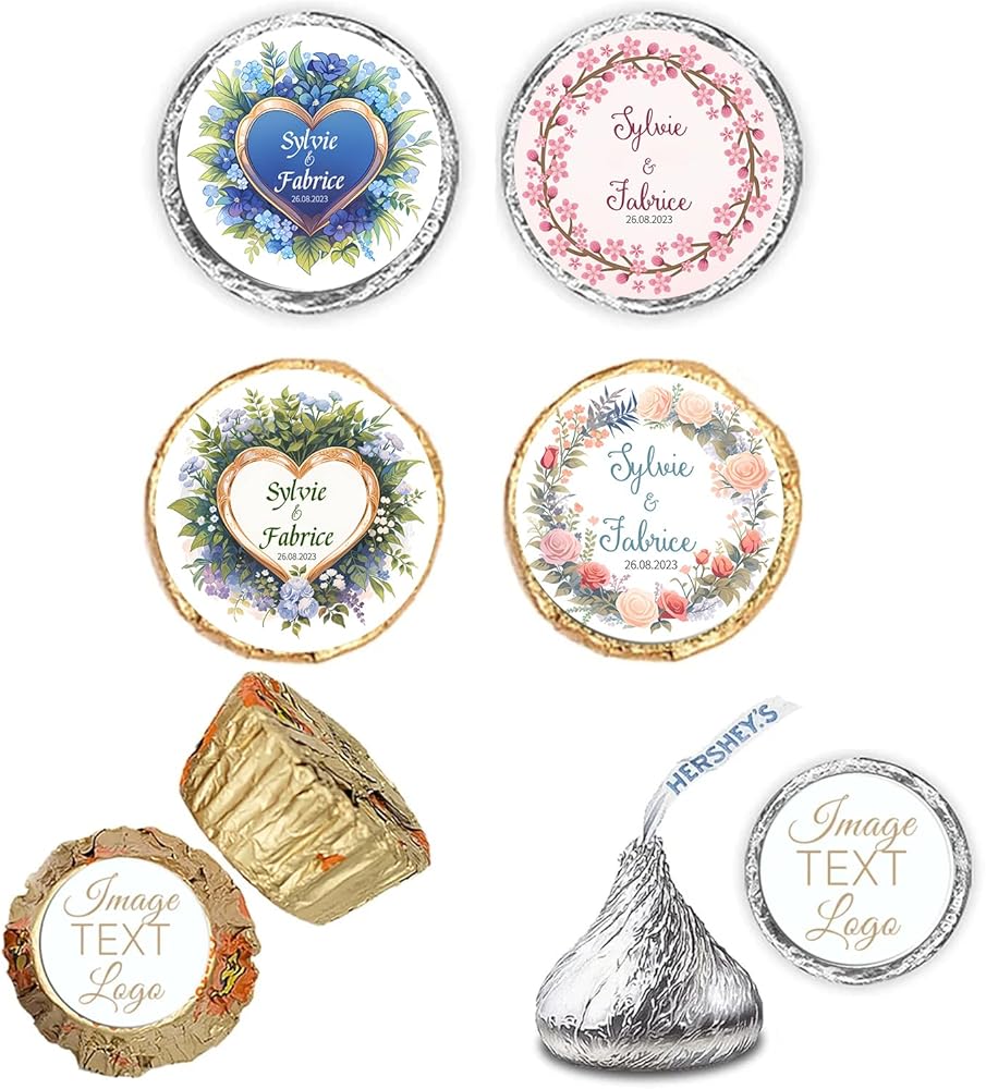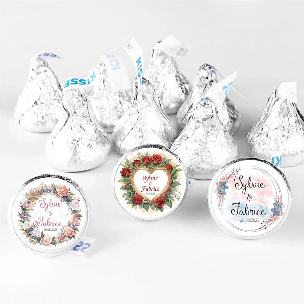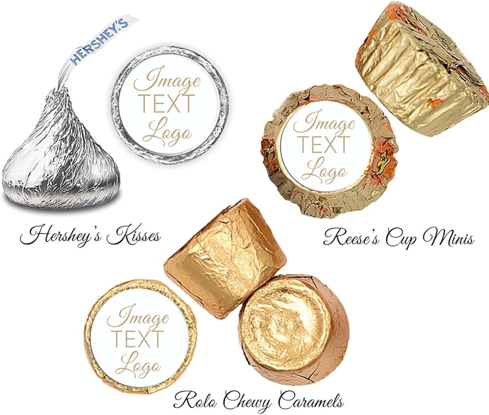 Size & Quantity: We offer range from 60 to 240 count of custom stickers for different size (0.75"-2" inch), 0.75 inch wide circle fits Hershey's Kisses Candy and Most Mini Candy.