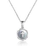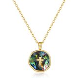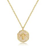 Dainty Cross Pendant Necklace - Delicately crafted 12×15mm cross charm represents simplicity, faith, and modern elegance, features a luminous resin inlay in shades of opal blue or pearly white, framed in polished gold tone. The minimalist disc cross design blends timeless faith cross necklace with a modern splash of color.