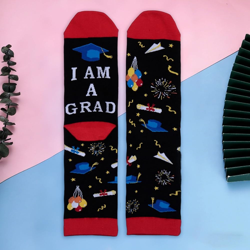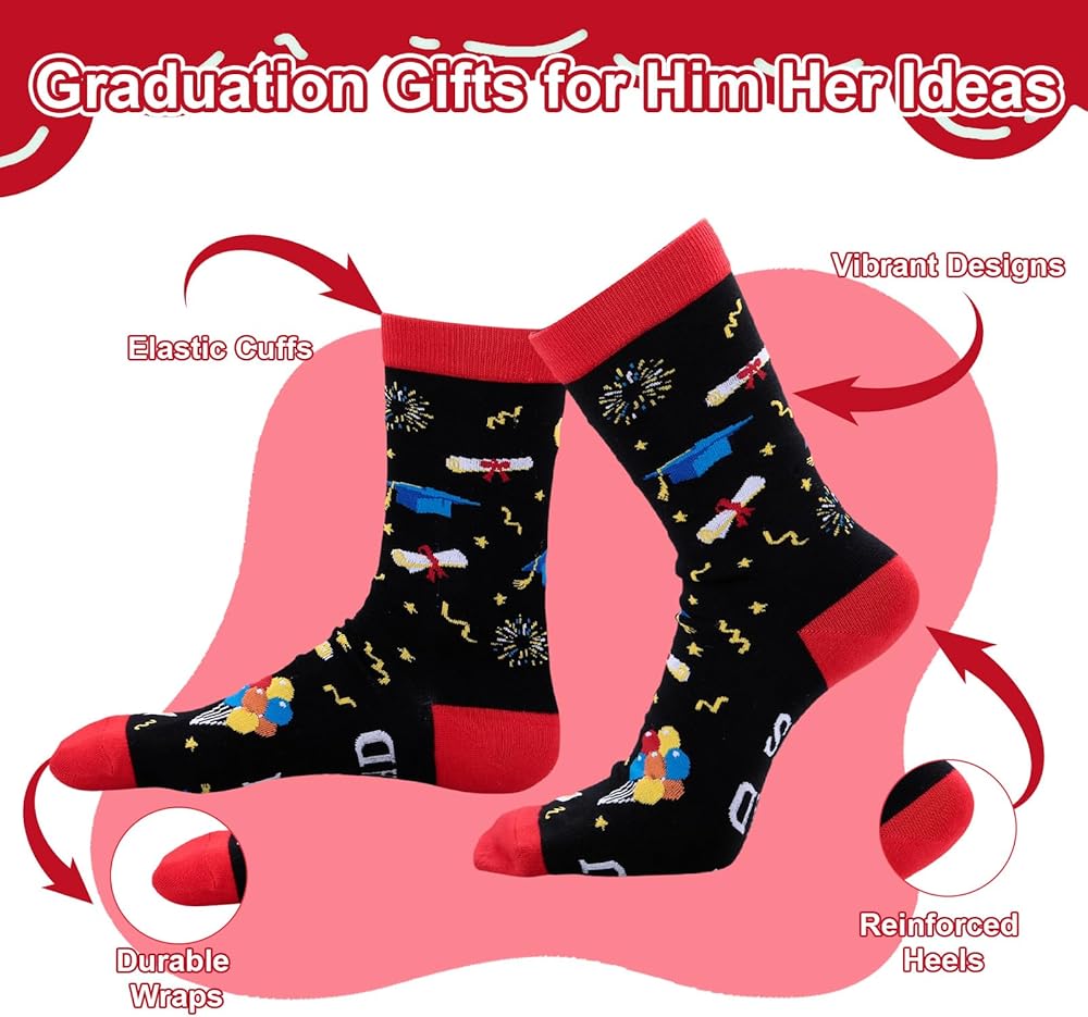 🎓PREMIUM COTTON COMFORT FOR LONG CEREMONIES – Crafted from soft, breathable cotton blend, these graduation 2026 gifts keep feet comfortable during lengthy commencement ceremonies. The stretchy fabric provides a snug fit without binding, while moisture-wicking properties ensure all-day freshness. From the ceremony to the after-party, these socks deliver comfort with every step.