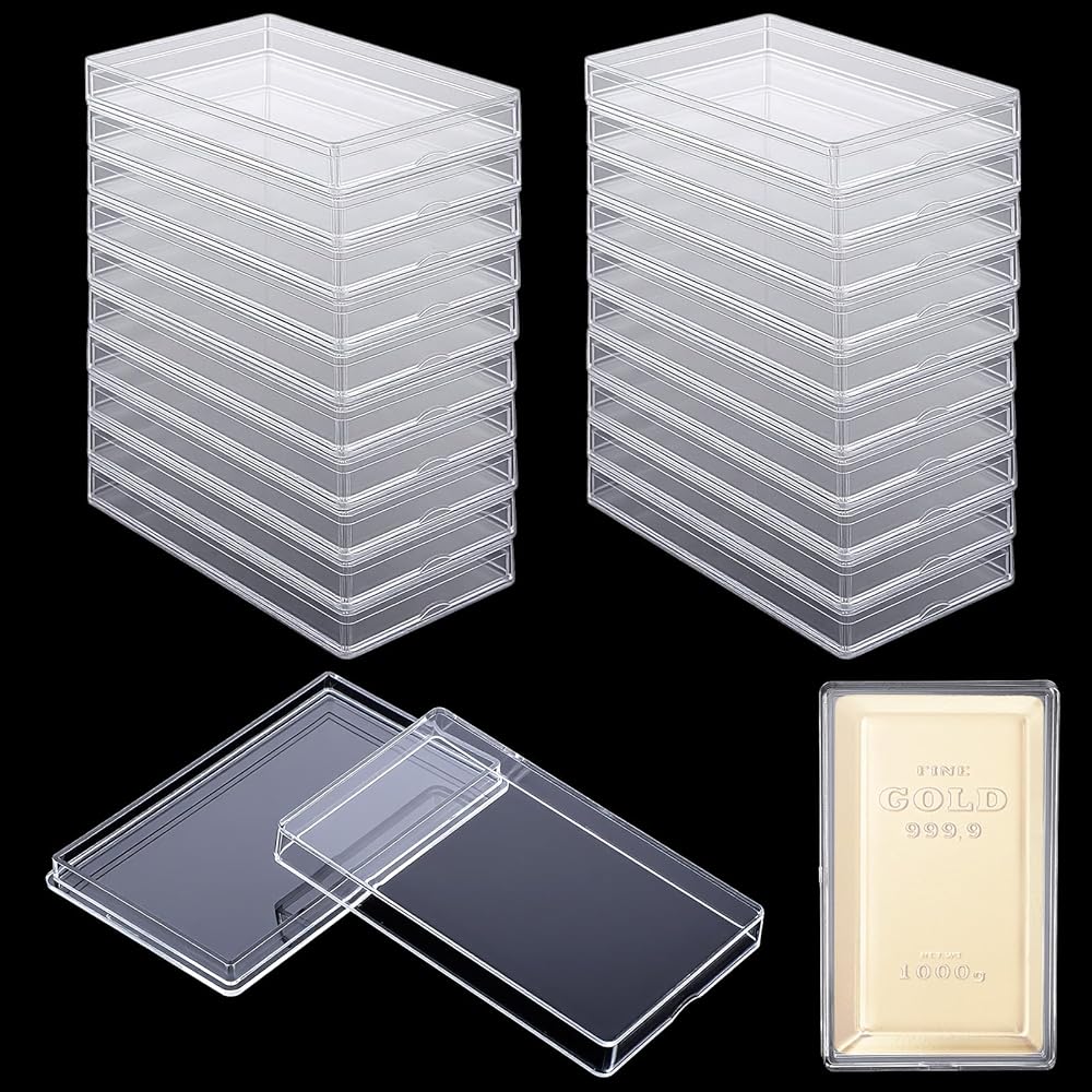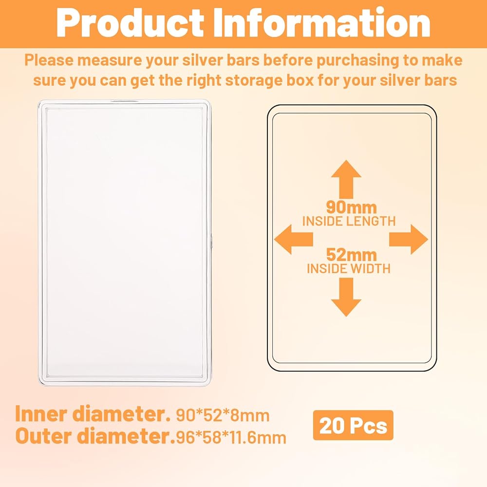 This 20-pack 10 oz silver bar case is a practical essential for silver bar collectors. Crafted from high-quality acrylic material, it features precise dimensions of 3.77×2.28×0.456 inches. The transparent design and reliable performance perfectly meet the needs of silver bar storage, protection and display, combining practicality with gift value.