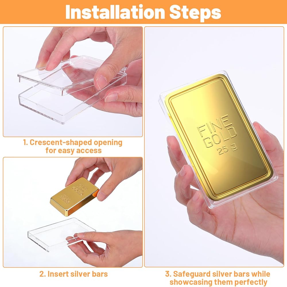 4. Precise size of 3.77×2.28×0.456 inches: Tailor-made for 10 oz silver bars, the internal space fits the shape of silver bars, ensuring stable placement without shaking. Warm reminder: Not all sizes of silver bars are suitable. Please measure your silver bar size before purchasing to ensure compatibility.
