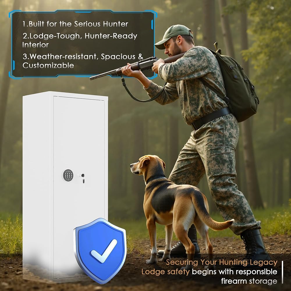 ✅【Silencing and Locking System Rifle Safe】The gun cabinet has silent and locking system, long press the "*" sign, you can enter the silent mode, so that you can have a quiet use environment; password input error 5 times, the gun cabinet will be locked, which will effectively protect your gun cabinet.