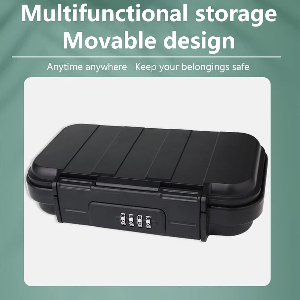 4-Digit Combination Mini Box for Travel Safe,Beach Safe for Valuables and Phone,Keep Your Money, Passport, and Earrings, Rings in our Small Box for Travel and Dorm Rooms(Black)