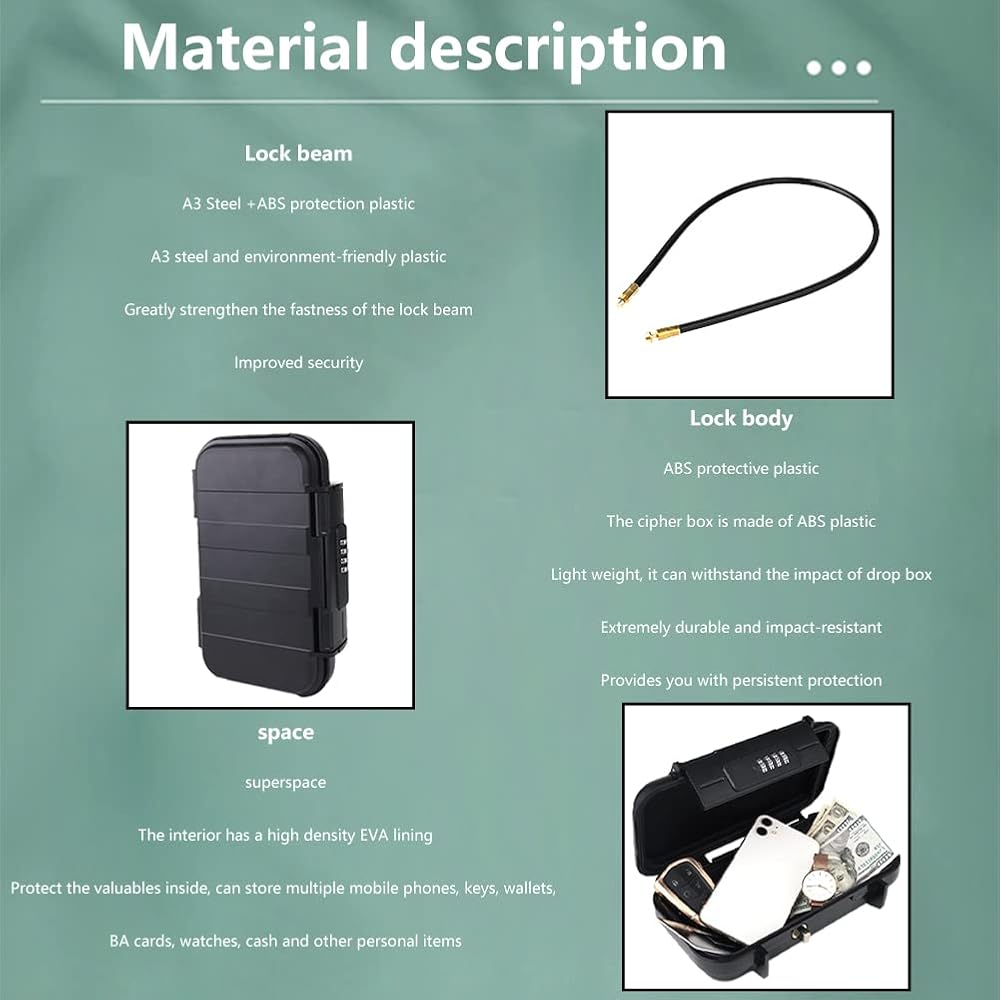 【Easy to Carry】Our safe box comes with a removable sturdy wire chain. Meant that you could both be in the pool or on the beach at the same time without having to worry that items had been left unattended. Ideal for taking exactly what you need, anywhere, at any time.