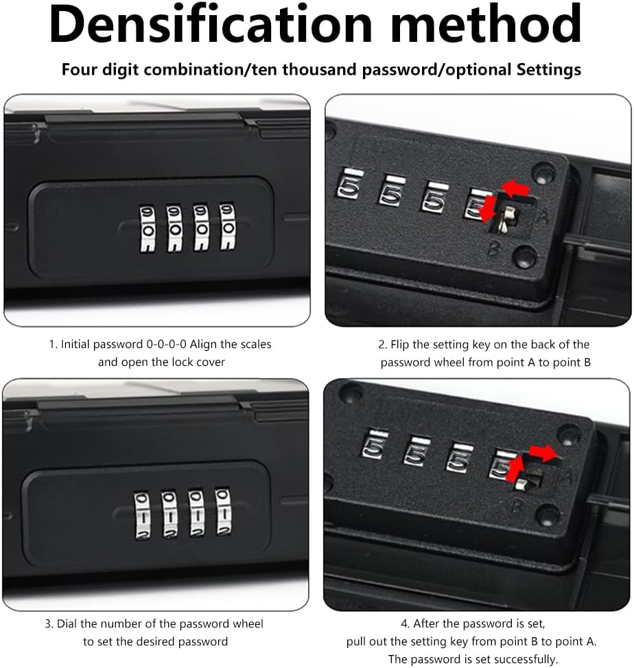 【4 Digit Dials】The 4-digit combination is easy to remember and reset.It offers up to 10,000 combination possibilities. You can record your password by taking a photo or note after every time reset the password.