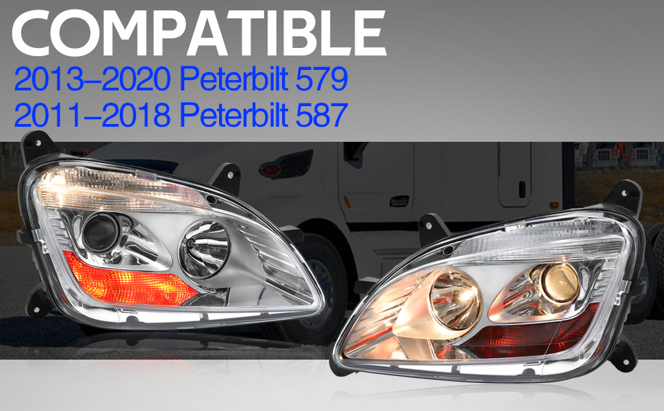 Direct Replacement- Right Side Halogen headlights compatible with 2013-2020 Peterbilt 579,2011-2018 Peterbilt 587 truck ,make sure the model is right for your truck before ordering. (Passenger Side)
