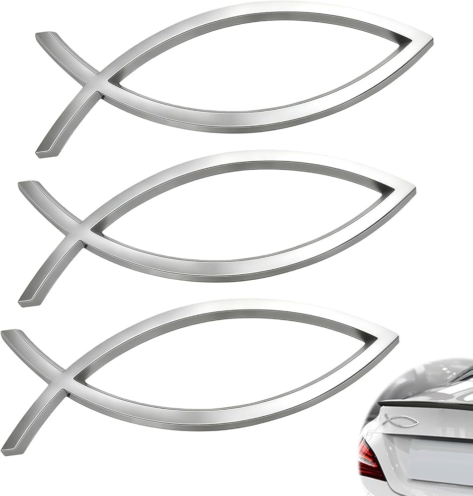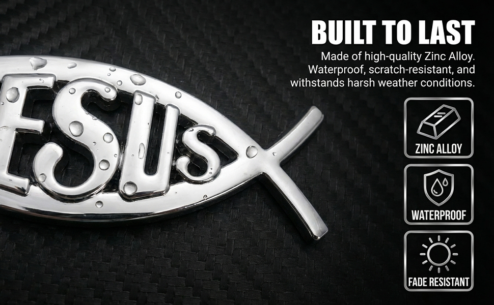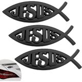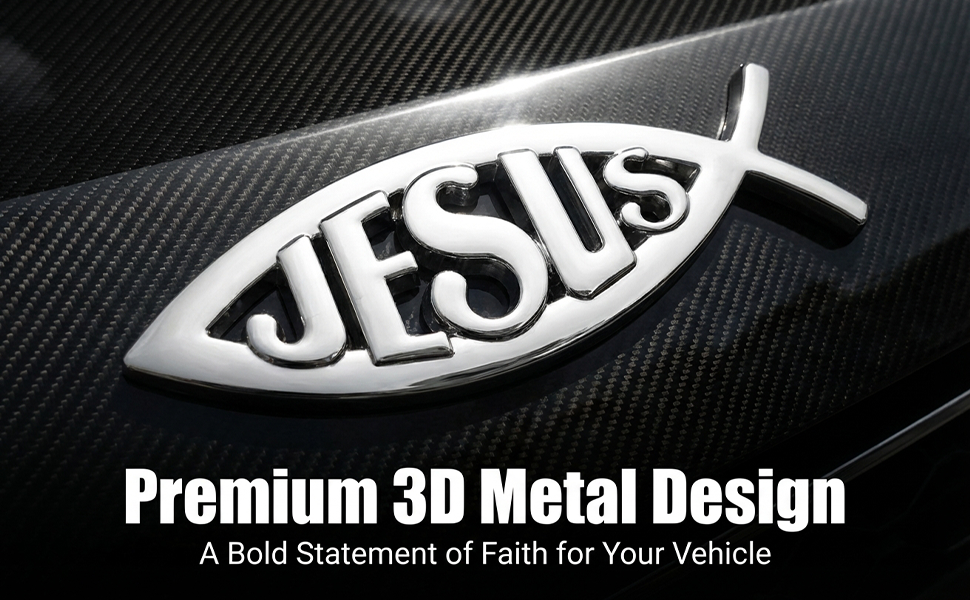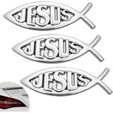 Raised 3D Jesus Fish Emblem: Bold Ichthys “JESUS” design adds depth and shine—an eye-catching alternative to a cross for car decor and faith statements, also great as jesus stickers for laptops and lockers