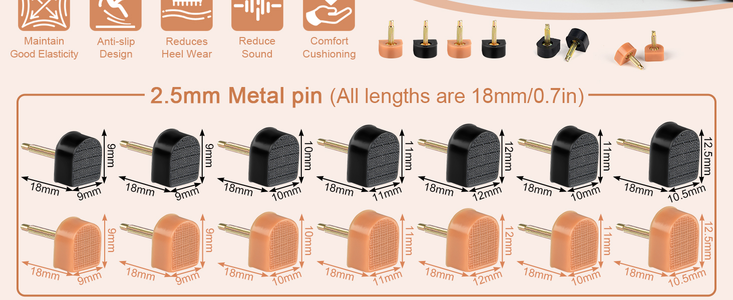 Multiple Size Set: You will receive 56 pairs of heel replacement tips, available in black and apricot, each color including 3mm and 2.5mm U-shaped nails, and 7 sizes ranging from 8mm to 12.5mm, with two pairs of each size, easily meeting all your heel replacement needs