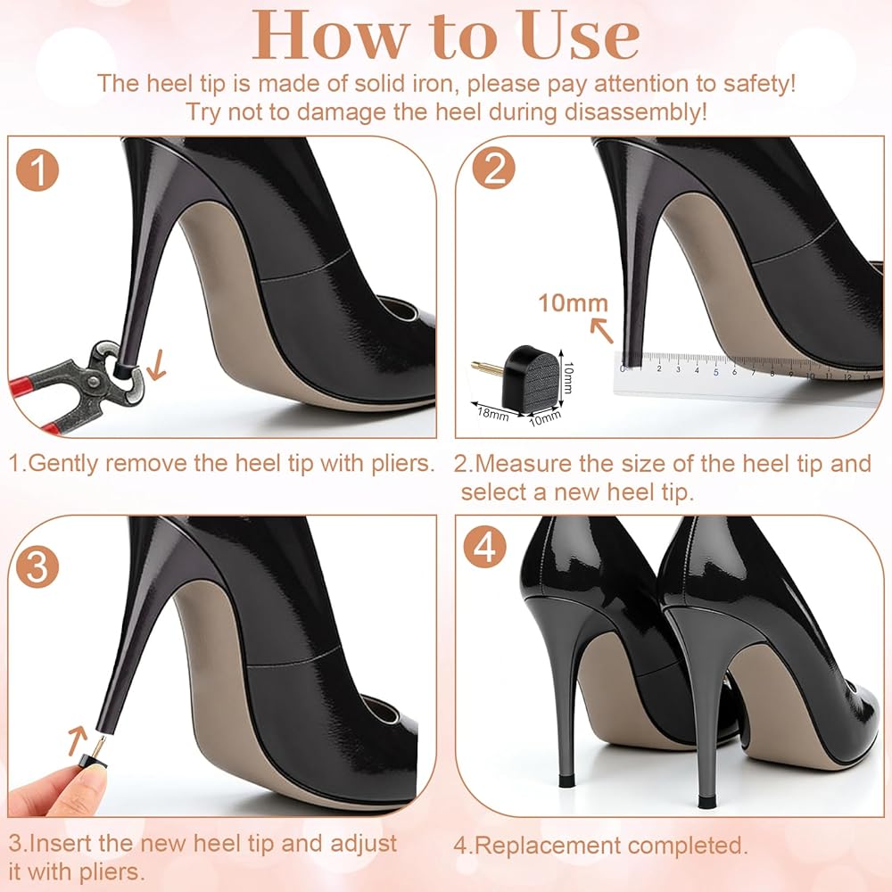 Easy Replacement: Simply use household pliers or a nail remover to remove the old heel pins, select the corresponding size of the new pin, and insert it into the heel pinhole. Gently tighten to complete the replacement; The operation is simple and quick, allowing you to easily repair your shoes