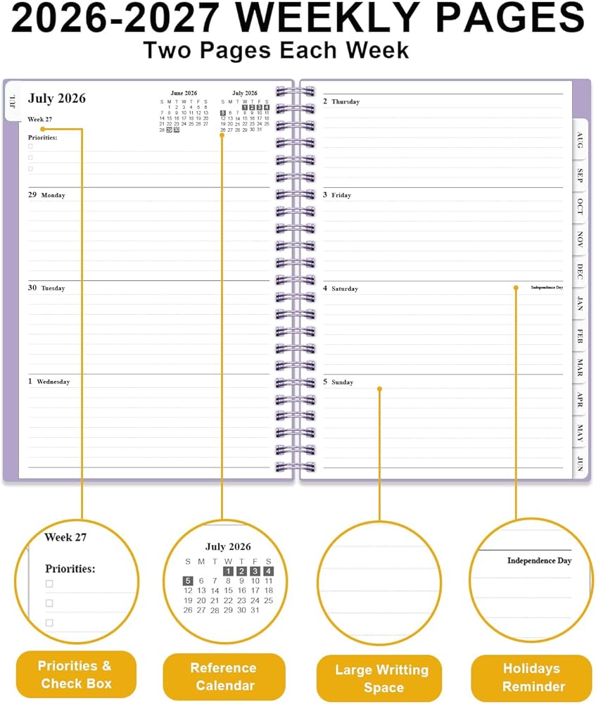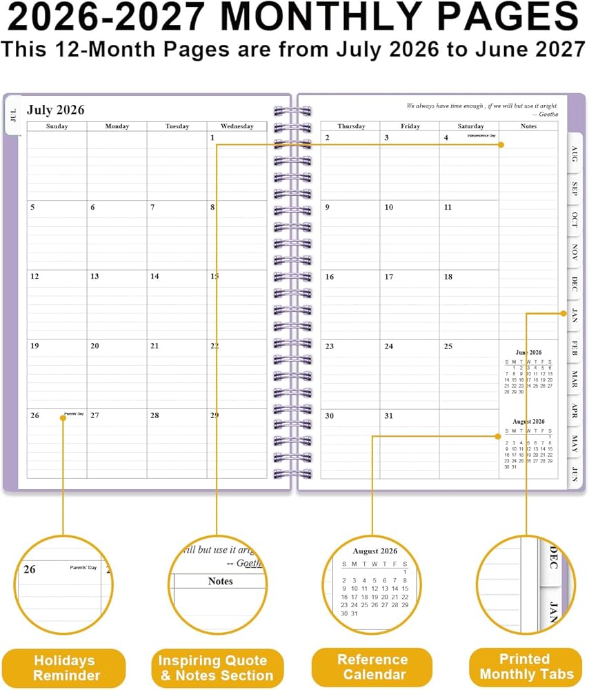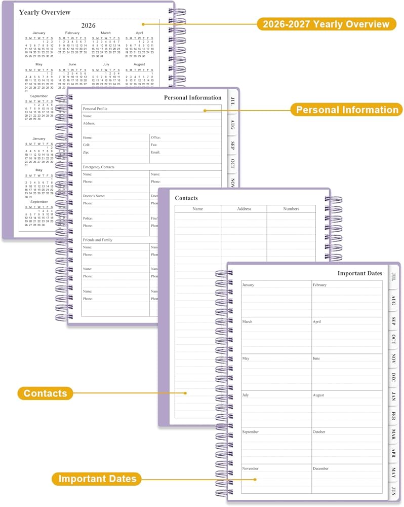 Versatile for All Lifestyles - The planner 2026-2027 is perfect for students, teachers, professionals, and homemakers. Whether tracking coursework, work projects, family activities, or personal goals, it enhances organizational efficiency across all scenarios.
