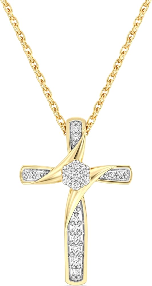Features a classic cross pendant set with lab grown diamonds totaling 0.10 carat total weight, offering meaningful sparkle with elegant simplicity.