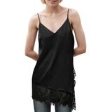 Occasion: Loose fit lace patchwork slit hem satin silk camisole top is perfect for shopping, holiday, office, work, school, graduation, photo, birthday, cocktail party, club, date, rave, travel, vacation, music festival, homecoming, wedding guest, banquet, prom, dance ball, resort, dating, celebration, night out, date night, business meeting, anniversary, daily wear, home and so on. V neck spaghetti strap split contrast lace hem cami shirt for women, ladies stylish lace trim spaghetti strap tank
