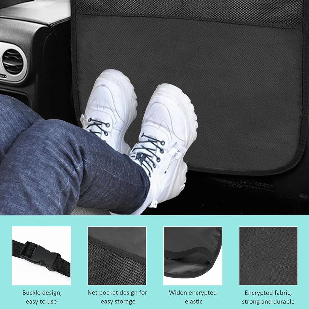 Premium Material: The front side of this kick mat is made of polyester taffeta and PU, featuring excellent wear resistance; it can withstand various scratches and is not easy to tear or break. The waterproof coating on the back effectively blocks liquid from penetrating into the seat fabric