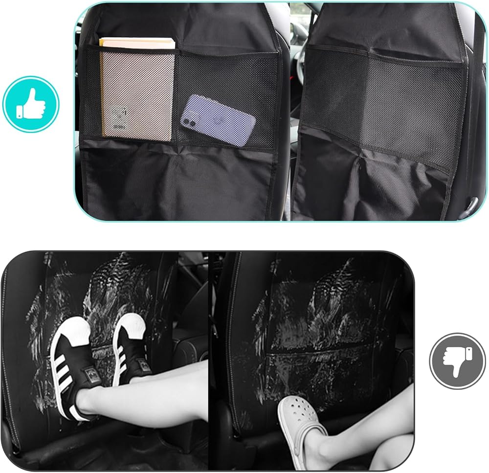 Solid Protection: This backseat kick mat can resist various damage and grime, effortlessly handling situations like footprints from backseat passengers kicking, scratches from pet claws, mud, and spilled drinks. It provides comprehensive protection for your car's seatbacks, keeping them clean and intact