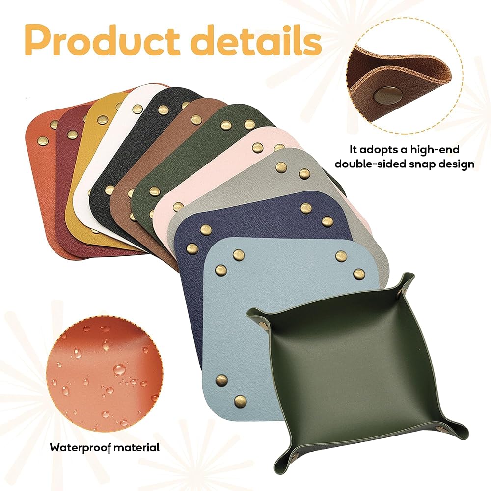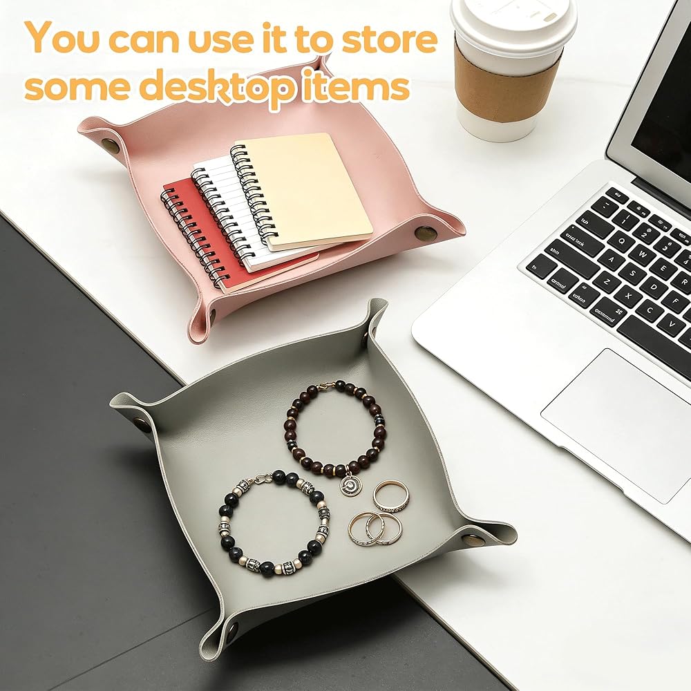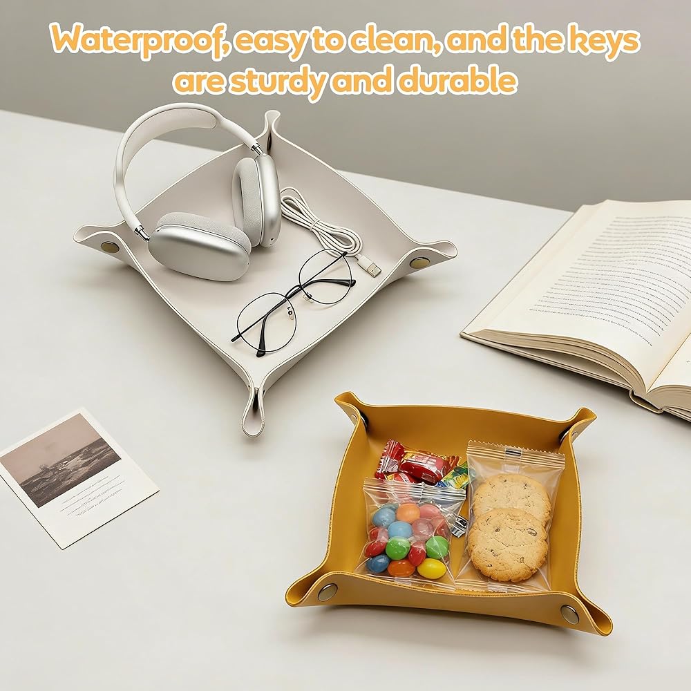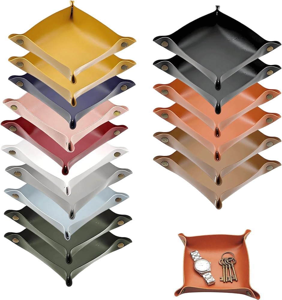 16 Pcs Leather Valet Tray, Key Tray for Women and Men, Foldable Catchall Organizer, Portable Leather Organizer for Entryway Desk for Phone, Keys, Earphone, Watch, Jewelry, Coin(11 Colors)