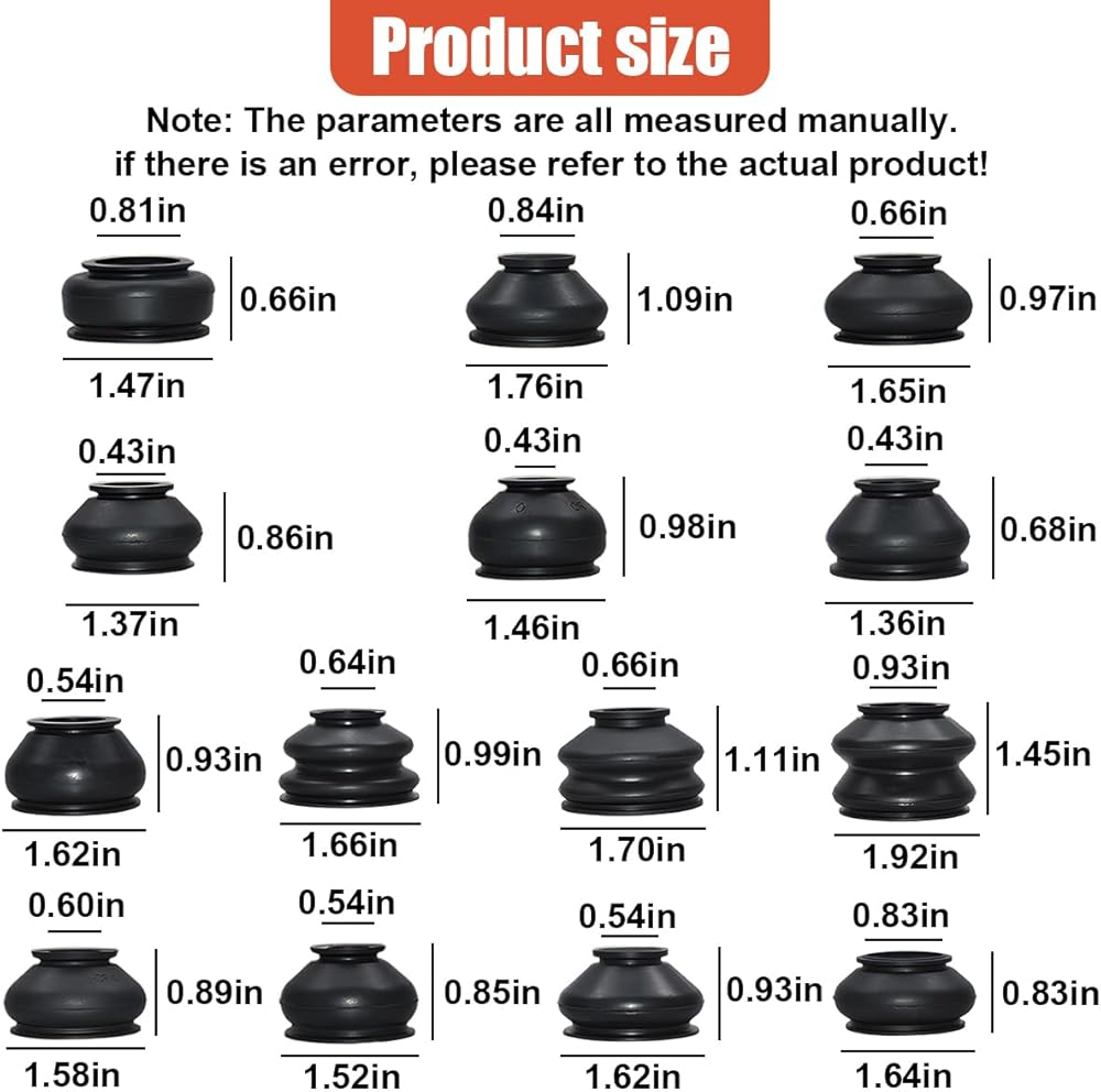 【Applicable】: This set includes 14 steering knuckle dust covers suitable for inner and outer tie rod ball joints on most vehicle models. Always verify product dimensions before purchase to guarantee a perfect fit with your car's specific components.