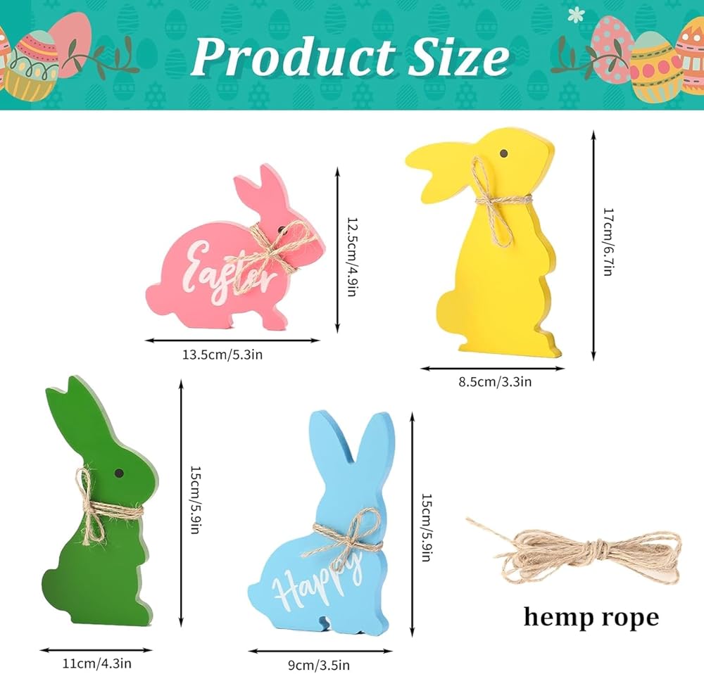 🐰【EASTER THEME】Our wooden bunny decor adopts cute bunny shapes with folding ears and standing ears styles, and is designed with classic Easter colors, which make these bunny decorations more adorable and easily get people's attention