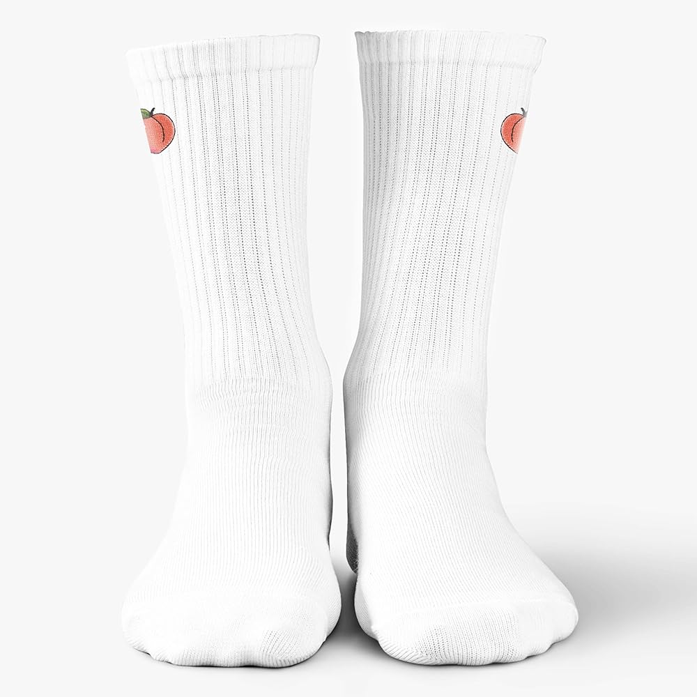 These peach embroidery socks add a soft pop of color to a clean white design, perfect for people who love peaches, summer outfits, and simple fruit details. The small peach stitched on each sock keeps the look playful but still neat enough for everyday wear with sneakers or casual shoes. Soft, breathable-feeling on the feet, they work well from workdays to relaxed weekends in the garden. They're a sweet choice for peach lovers, home gardeners who grow peach trees, and friends who enjoy visiting orchards or farmers' markets during peach season. Use them as peach socks for birthday gifts, summer party favors, or Christmas stocking stuffers for anyone who waits all year for fresh peaches and peach desserts.