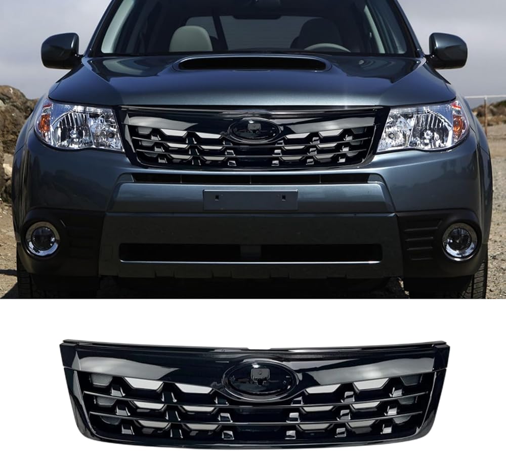 Front Bumper Upper Grill Gloss Black Grille Compatible with Subaru Forester 2009-2013 Accessories Replacement Parts