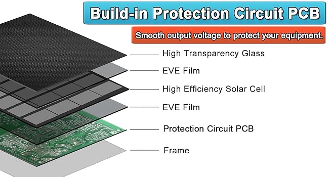 4.【IP65 Dustproof and Waterproof】The DC charging connector uses integrated molding technology, and the Type-C charging adapter uses a precision waterproof ring, so it can effectively withstand extreme weather such as wind, rain, thunderstorms, ice and snow. Our solar panel working temperature is:-20.5'C to 48.5°C(-5°F to 120°F)