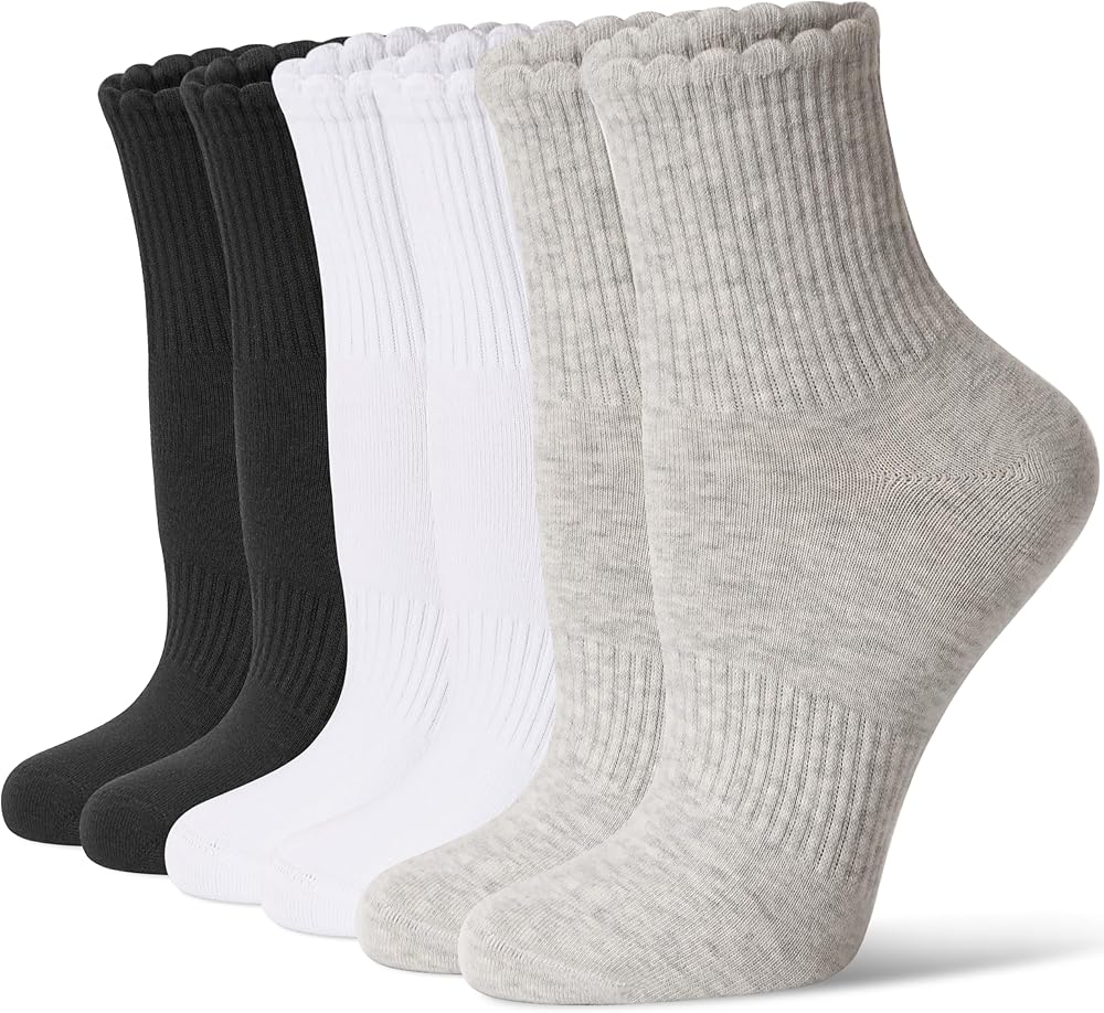 Scalloped Top Design :Classic ribbed cuffs feature a scalloped design, combining casual and sporty styles. Our women socks pair beautifully with loafers, casual shoes and Birkenstock shoes, while the above-ankle cut offers a stylish, flattering look for everyday wear.