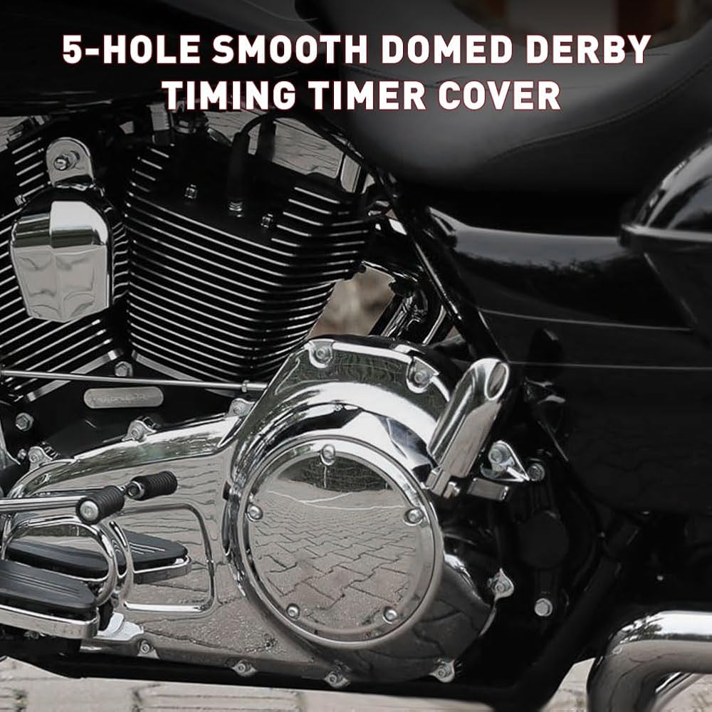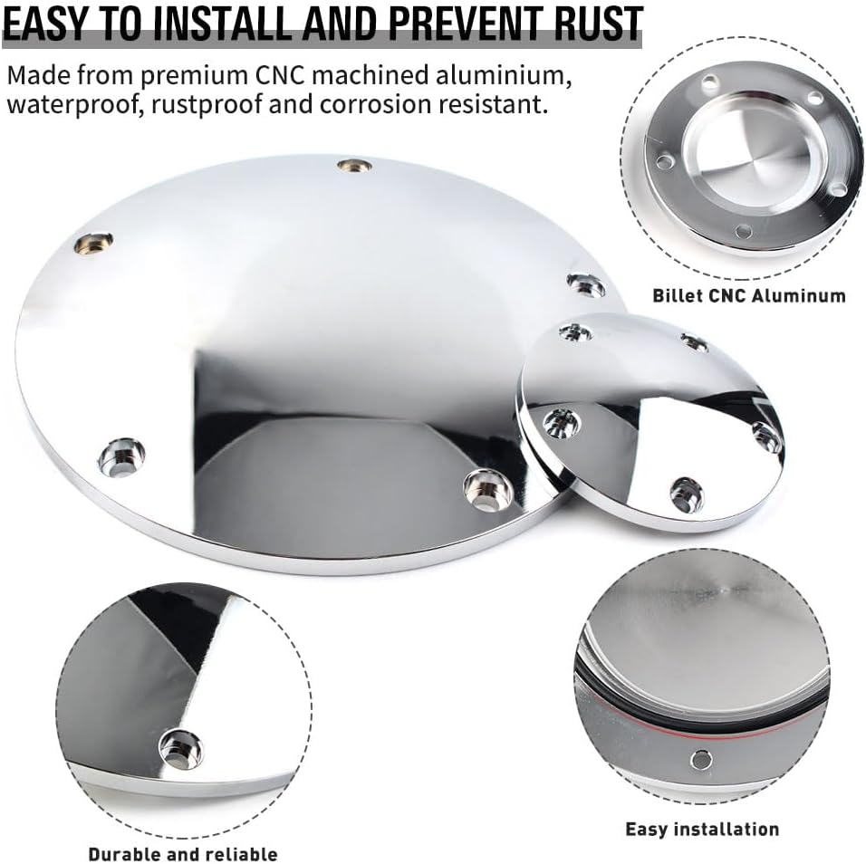 Three T CNC Aluminum Derby Cover + Points Covers Set for Harley Dyna 1999-2017, for Softail 1999-UP, for Touring FLHT FLHR FLHX FLTR FLHTCUTG 1999-2015, Chrome