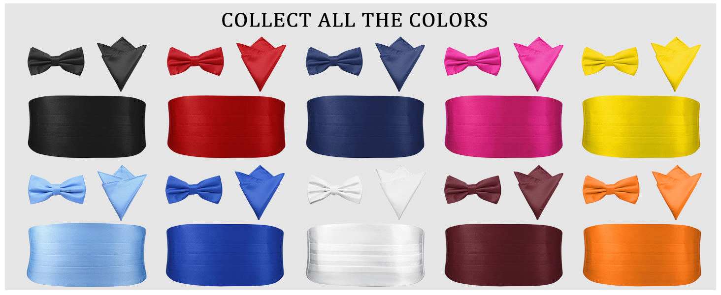 Size:Bow tie 12 * 6.5(cm), Pocket Square:9.8 in / 25 cm, Cummerbund Length of circumference:34 in/87 cm~41.7 in /106 cm