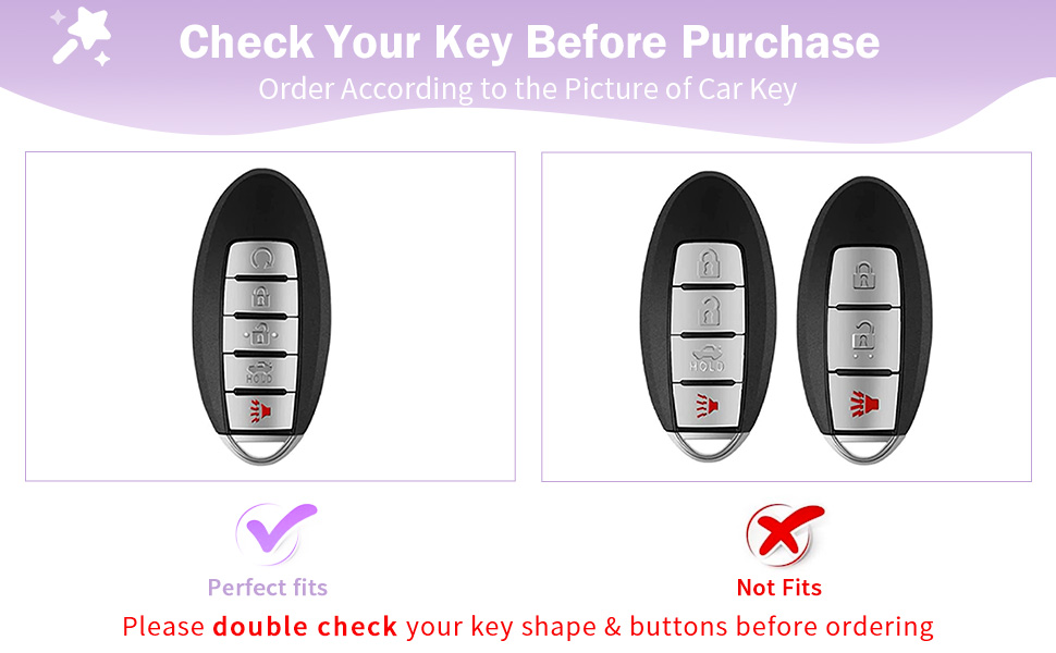 Specific Fit for Nissan: CARFIB for Nissan key fob cover offers a snug and secure fit. Fit for Nissan Altima 2016 - 2022, Rogue 2017 - 2022, Sentra 2021 2022, Maxima 2016 - 2021, Versa 2021 2022, Pathfinder 2013 - 2019, 2022, Armada 2017 - 2021, Murano 2016 - 2021, etc. Kindly Note: Please confirm your car key shape and buttons pattern before ordering.