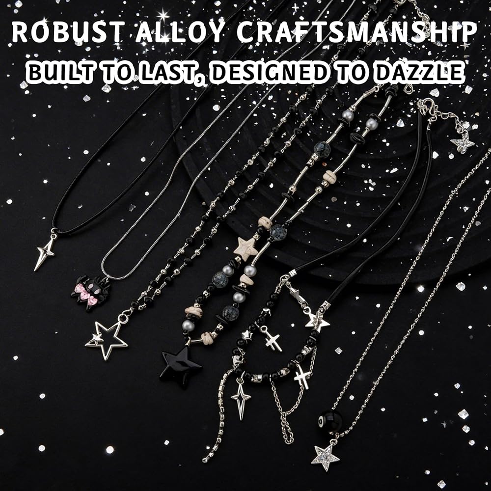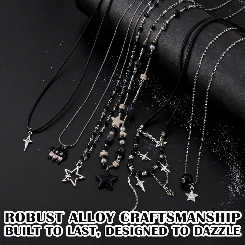 Dive into the world of alternative fashion with the Dvehdbay 6PCS Gothic Necklace Set, a collection meticulously crafted for those who dare to stand out. This exquisite assortment seamlessly blends the nostalgic charm of a Y2K necklace with the raw, edgy appeal of grunge jewelry and the profound depth of goth jewelry. Perfect for any occasion, from a vibrant party to a thoughtful anniversary celebration,