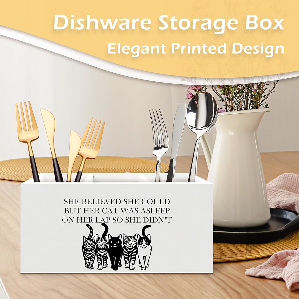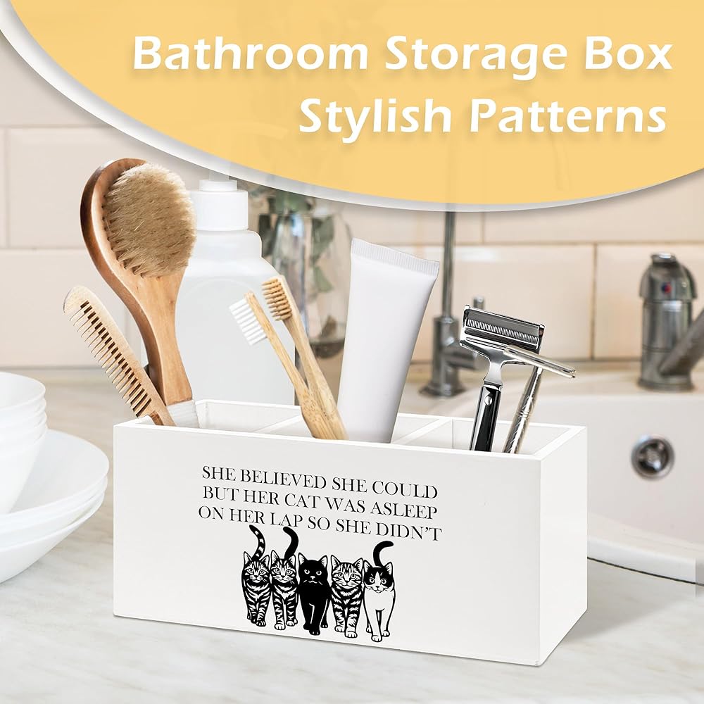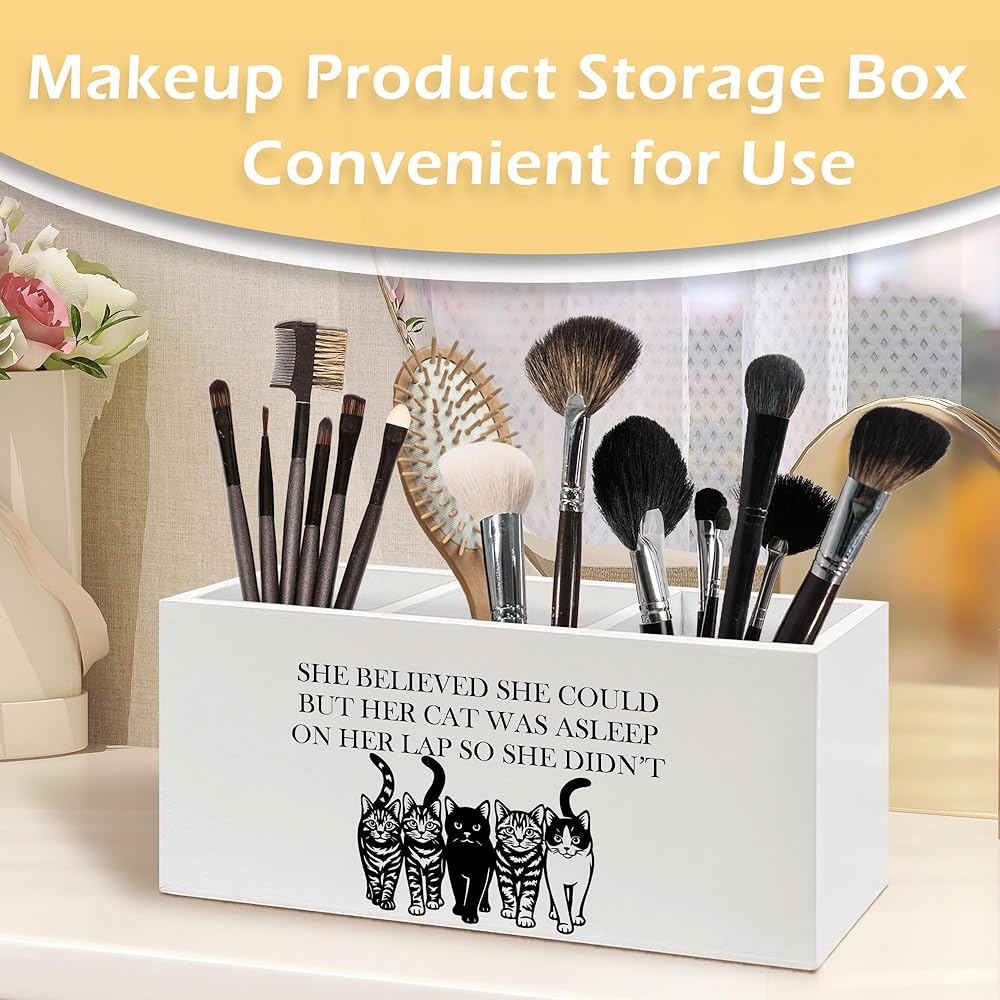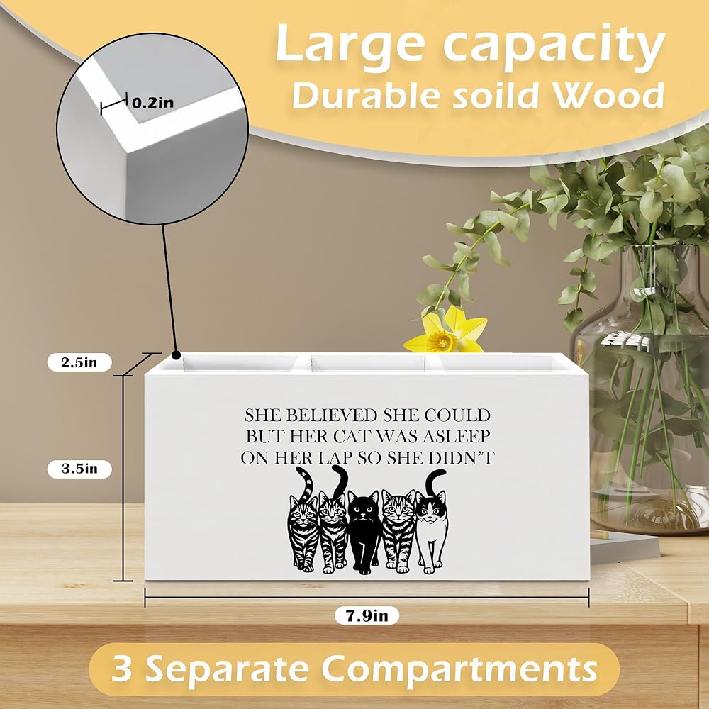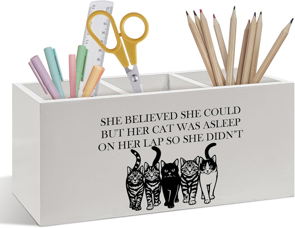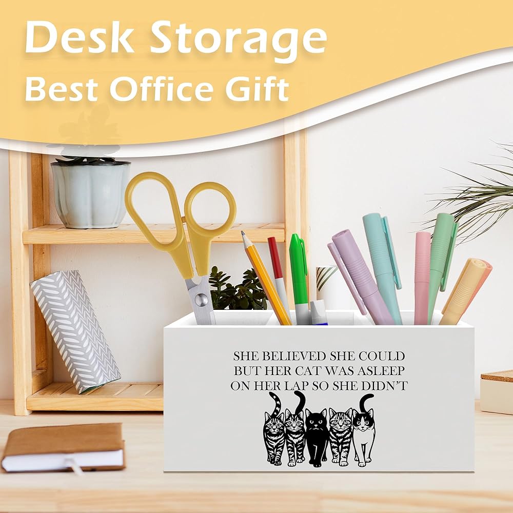 Funny Cat Pen Pencil Holder, Cat Mom Lady Lover Gifts, Cats Desk Accessories, She Believed She Could Kitty Wooden Pen Pencil Organizer for Home Office Desk Decor