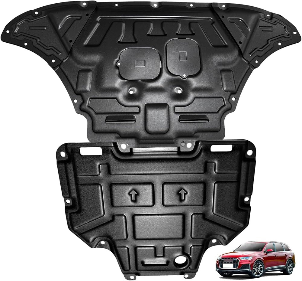 Front Engine Splash Shield Fit for Audi Q7 2017-2024 Lower Engine Case Guards Suitable for Audi Q8 SQ8 2019-2025 Front Engine Guard + Transmission Guard Mud Flaps