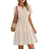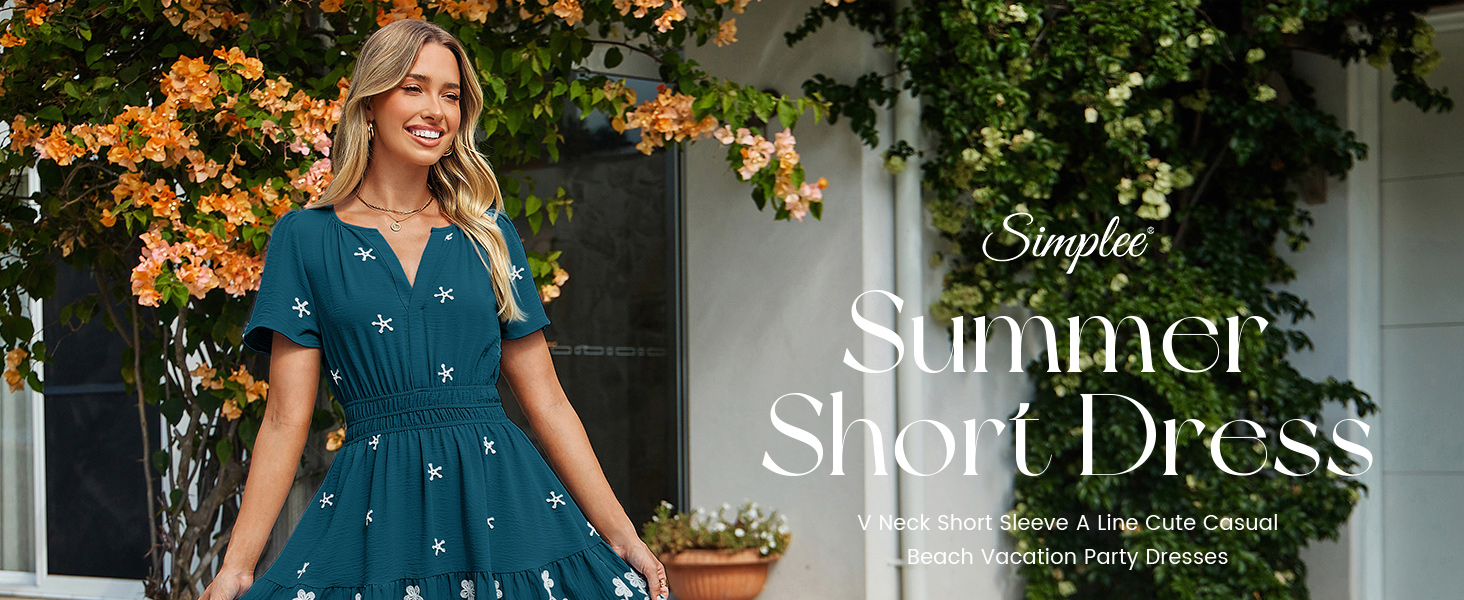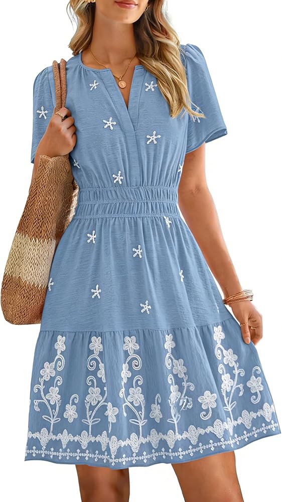 Features - The v neck, short sleeve mini dress is designed with a flattering empire waist that cinches your silhouette for a feminine, trendy look. The delicate floral embroidery adds a touch of romance, making this cute dress a standout in any wardrobe