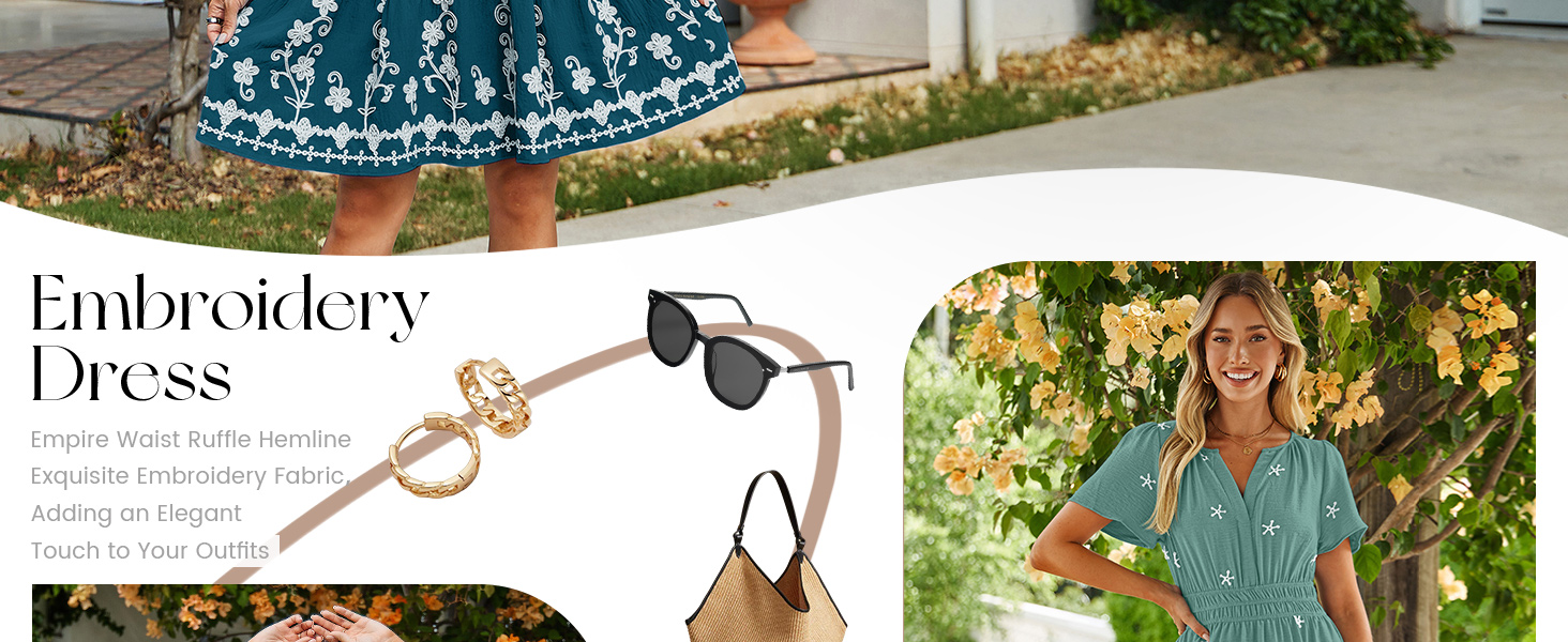 Material - The elegant dress is crafted from soft, breathable exquisite embroidery fabric, keeps you cool and comfy from spring through fall. The lightweight material drapes gently, making it ideal for all-day wear whether you're running errands or attending a wedding