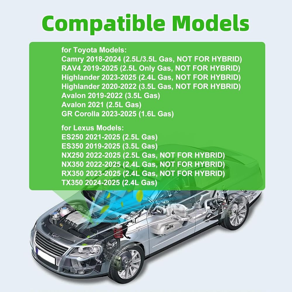 Fits for Toyota Camry 2.5L/3.5L 2018-2024, RA-V4 2.5L 2019-2025, Highlander 2.4L 2023-2025, Highlander 3.5L 2020-2022, Avalon 3.5L 2019-2022, Avalon 2.5L 2021, GR Corolla 1.6L 2023-2025 (NOT Fit for Hybrid)
