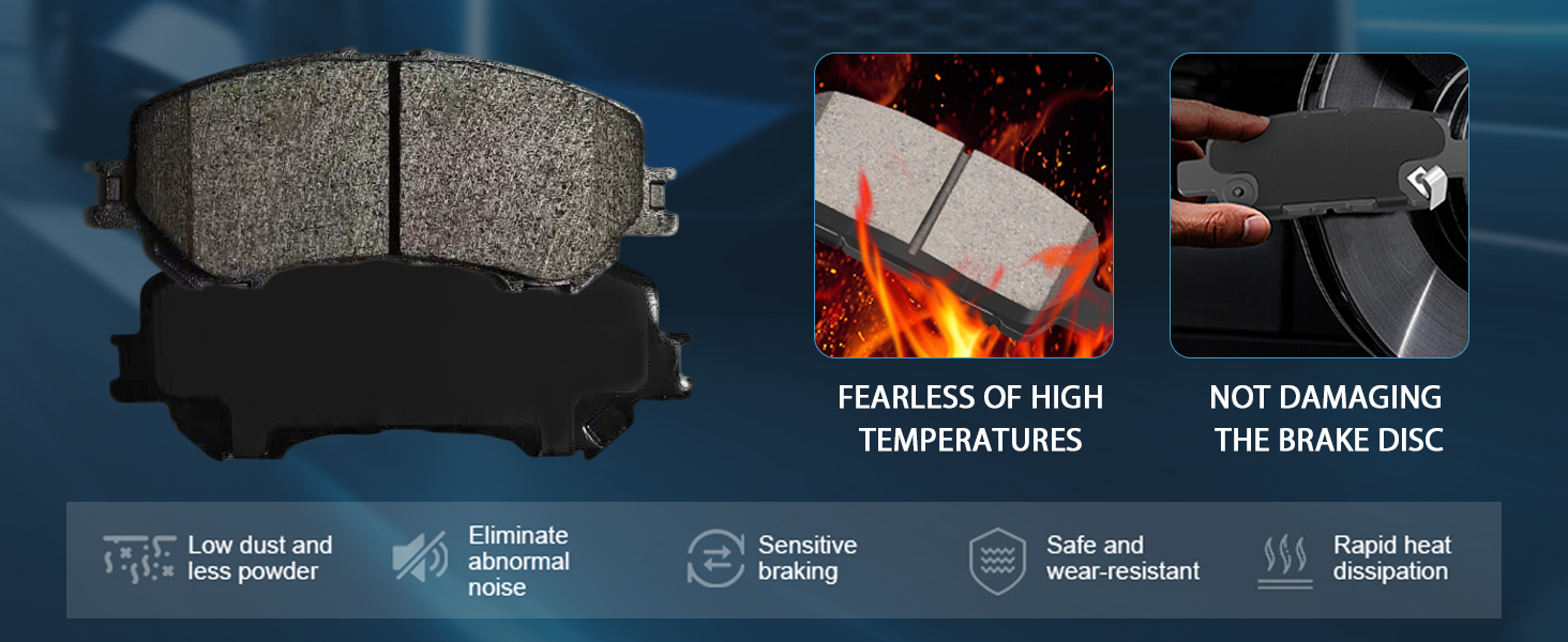 【Strong and Superior】Ultra-quiet The gasket serves as a buffer between the caliper piston and the brake pad back plate. They act to absorb vibrations, which will reduce noise,each brake pad also is treated with the scorch friction process to help lower break-in time,ensuring a longer lifespan for your vehicle's braking system.