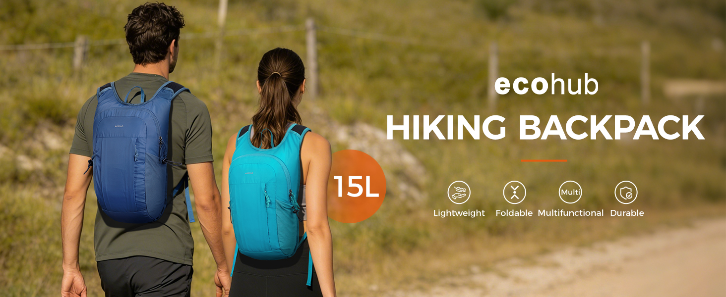 【LIGHTWEIGHT & PACKABLE】 Ultra lightweight 15L hiking backpack weighs only about 0.57 lb, folds down compactly to fit in luggage or carry-on — perfect as a packable travel backpack for day trips, hiking, or city walks.