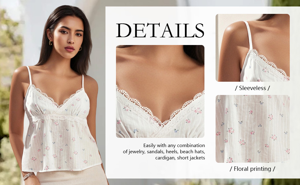 Occasions: Y2k floral print fairy core grunge tank top has deep v neck, a smocked hemline, and cross back design. It's perfect for daily wear, work, dates, parties, travel, shopping, and the beach