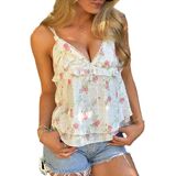 Features: Cute floral printing designed with ruffle hemline and spaghetti strap detailing, sleeveless summer beach camisole, very exquisite to show a feminine charm, pretty adorable