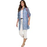 This georgette tunic brings ease and elegance to your everyday dressing with its flattering V-neck, button front design, and side slits for movement. Wear this shirt open over a tank with leggings for weekend ease, or buttoned up with slim pants for a polished daytime look.