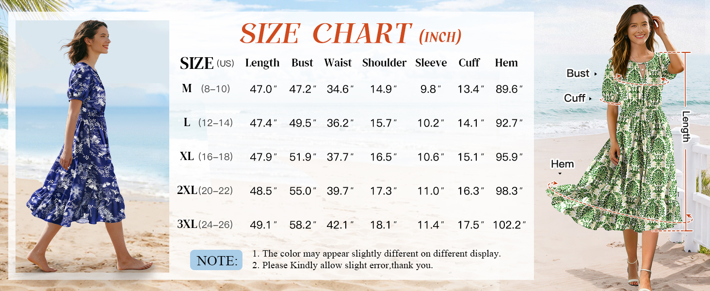 The softly gathered front and back neckline gives extra room and comfort for women's bust and shoulders, while the elastic waist sits just right, shaping your curves without feeling tight. From petite to curvy, these casual swing dresses flatter with effortless ease.