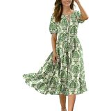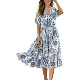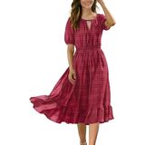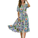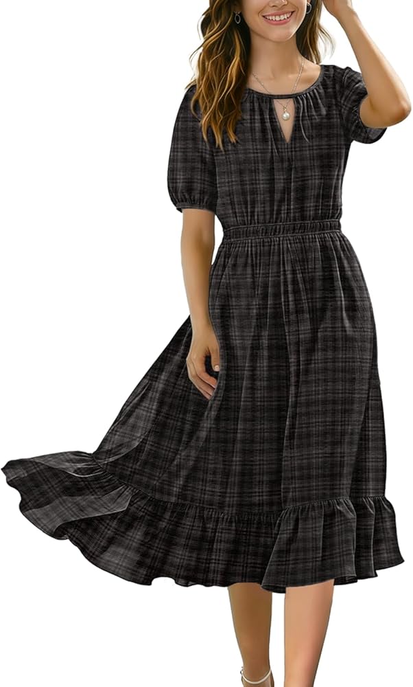 Boho midi dresses are all about sweet, relaxed charm. The keyhole detail elevates the classic round neckline, adding a delicate touch and just the right amount of breathing room. Gentle puff sleeves bring a soft retro vibe, while the ruffled hem dances with every step.